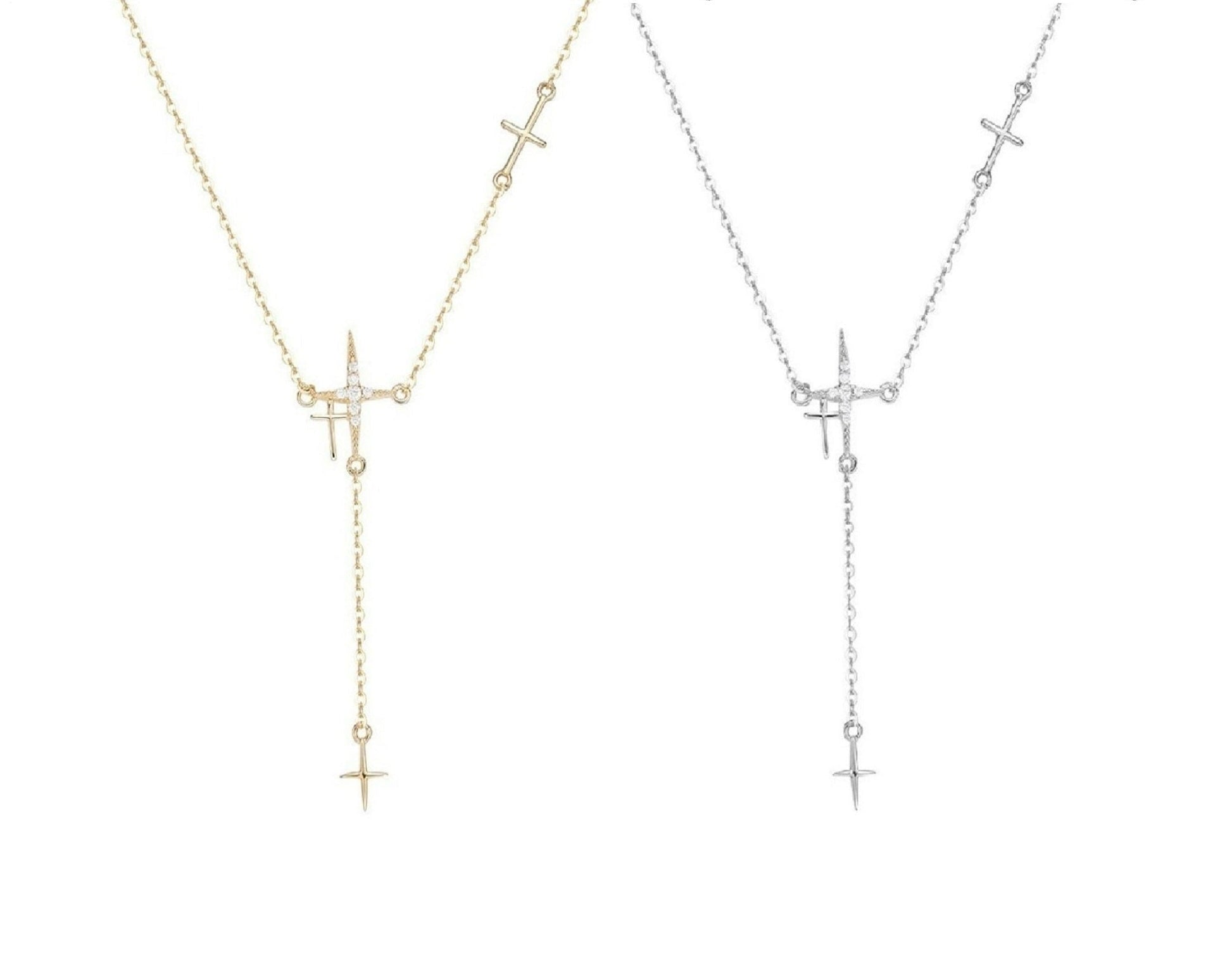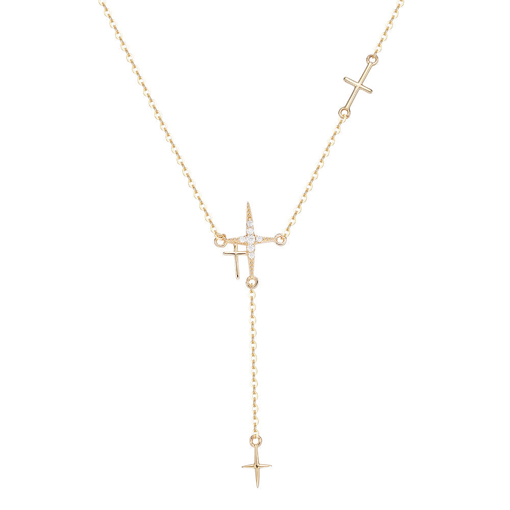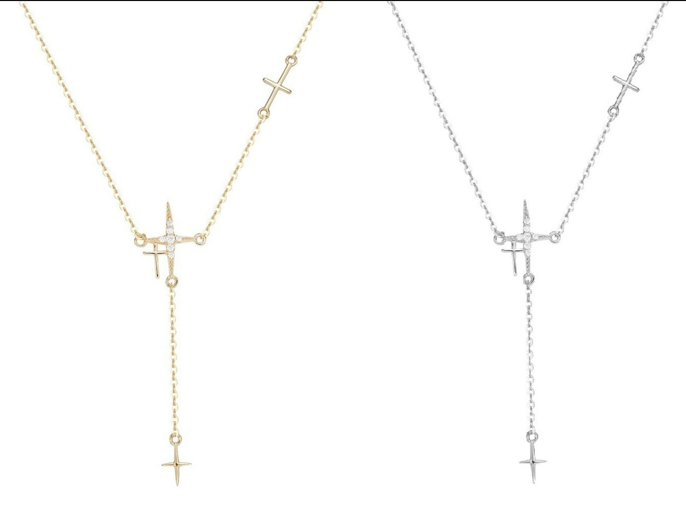 Stunning 14K Gold Moissanite 16" Falling Crosses Necklace : Elevate your style with this timeless beauty. Featuring approx. 0.05CT of Moissanite Stones , it adds a touch of glamour to any look.