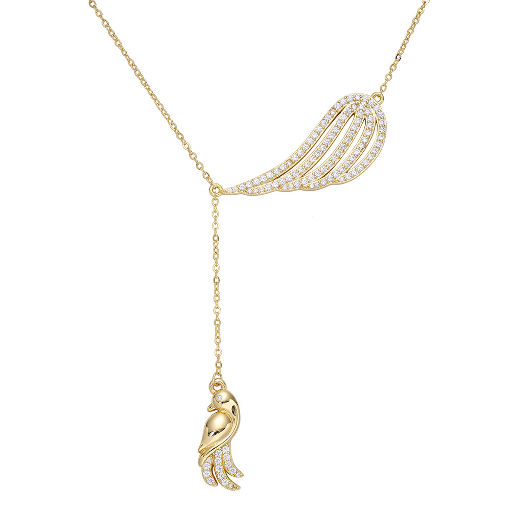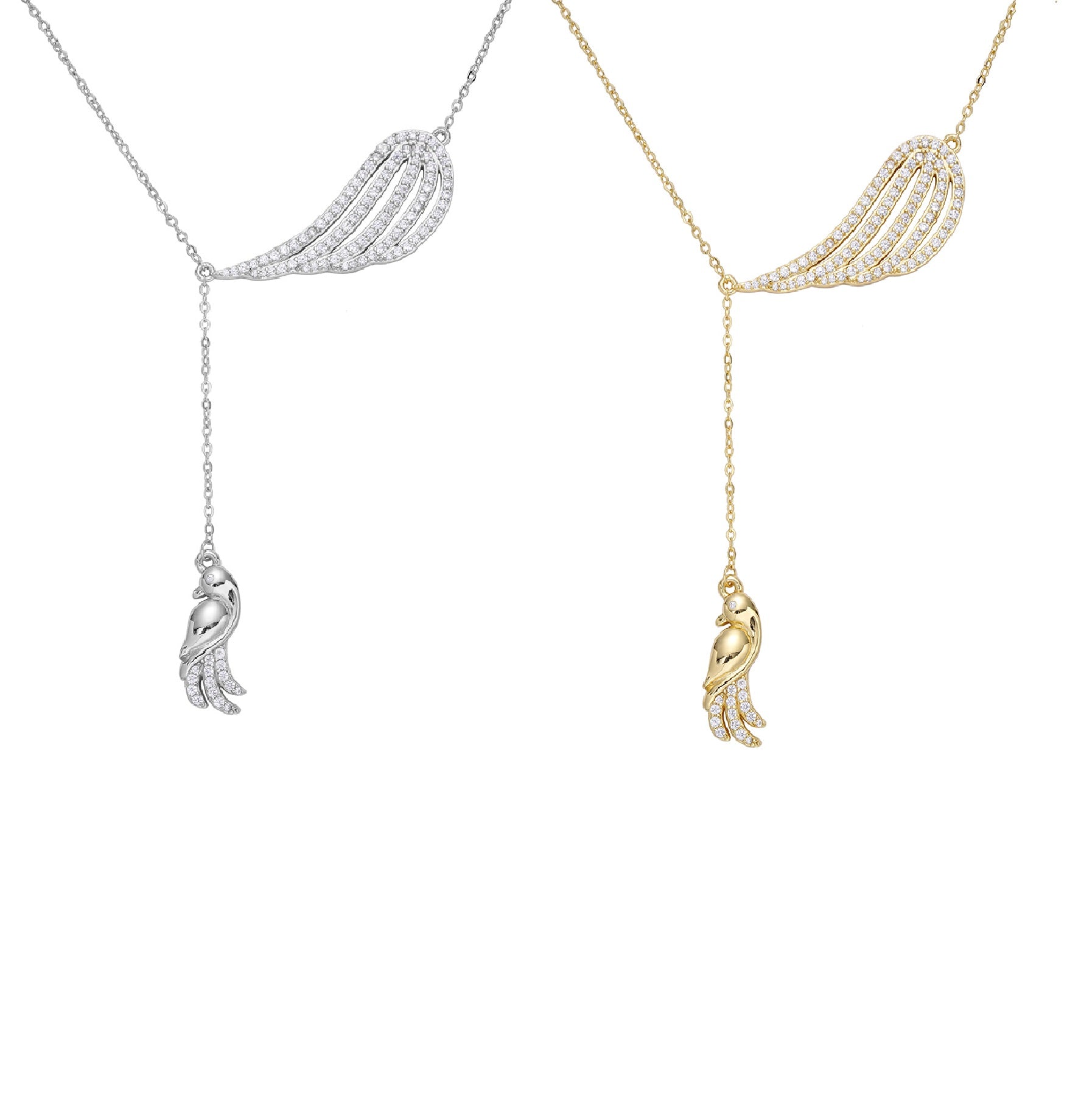 14K Gold Feather with Bird Necklace : Elevate your style with this timeless beauty. Featuring approx. 1.25CT for 16" + 2", 18" & 18" + 2" of Round MOISSANITE Stones, it adds a touch of glamour to any look.