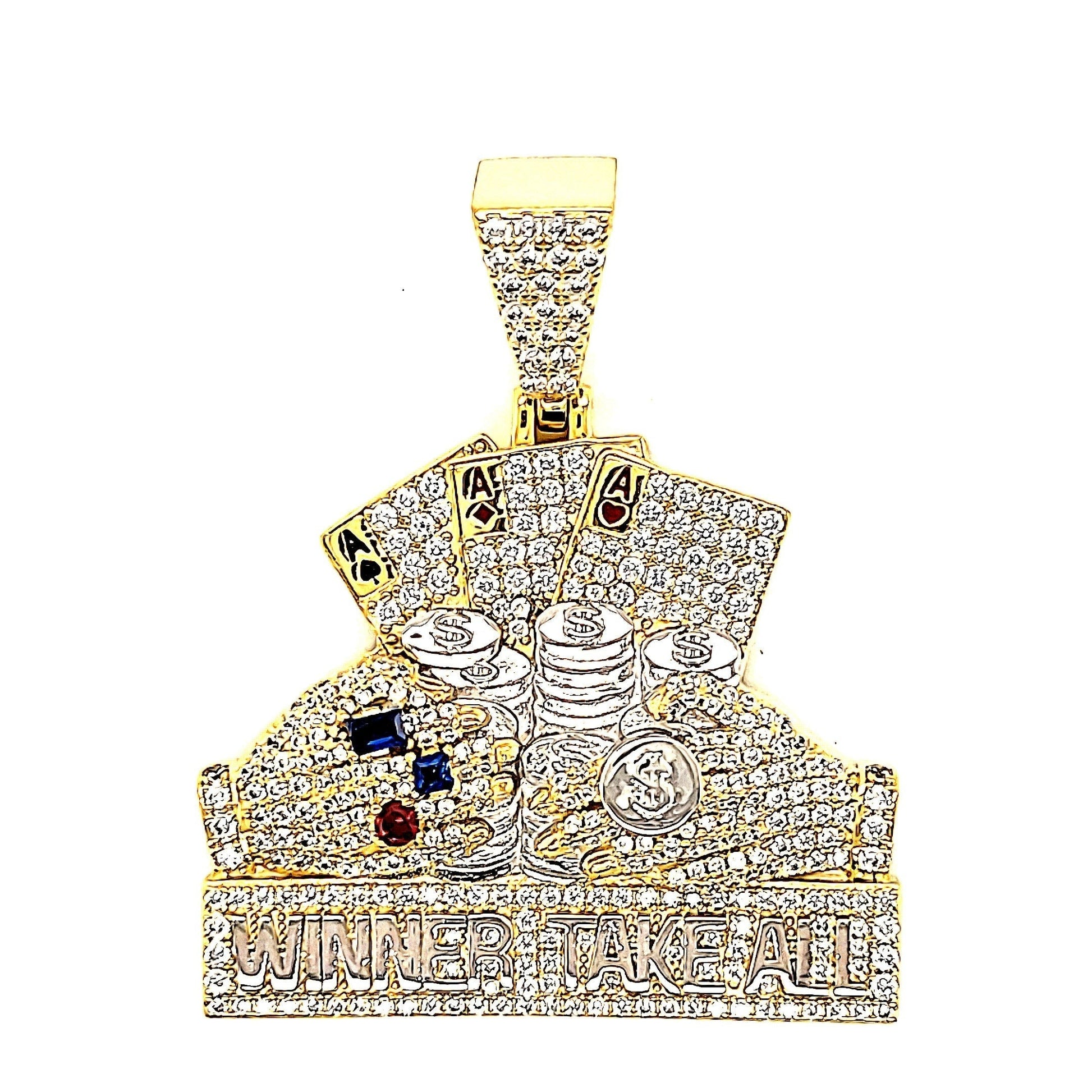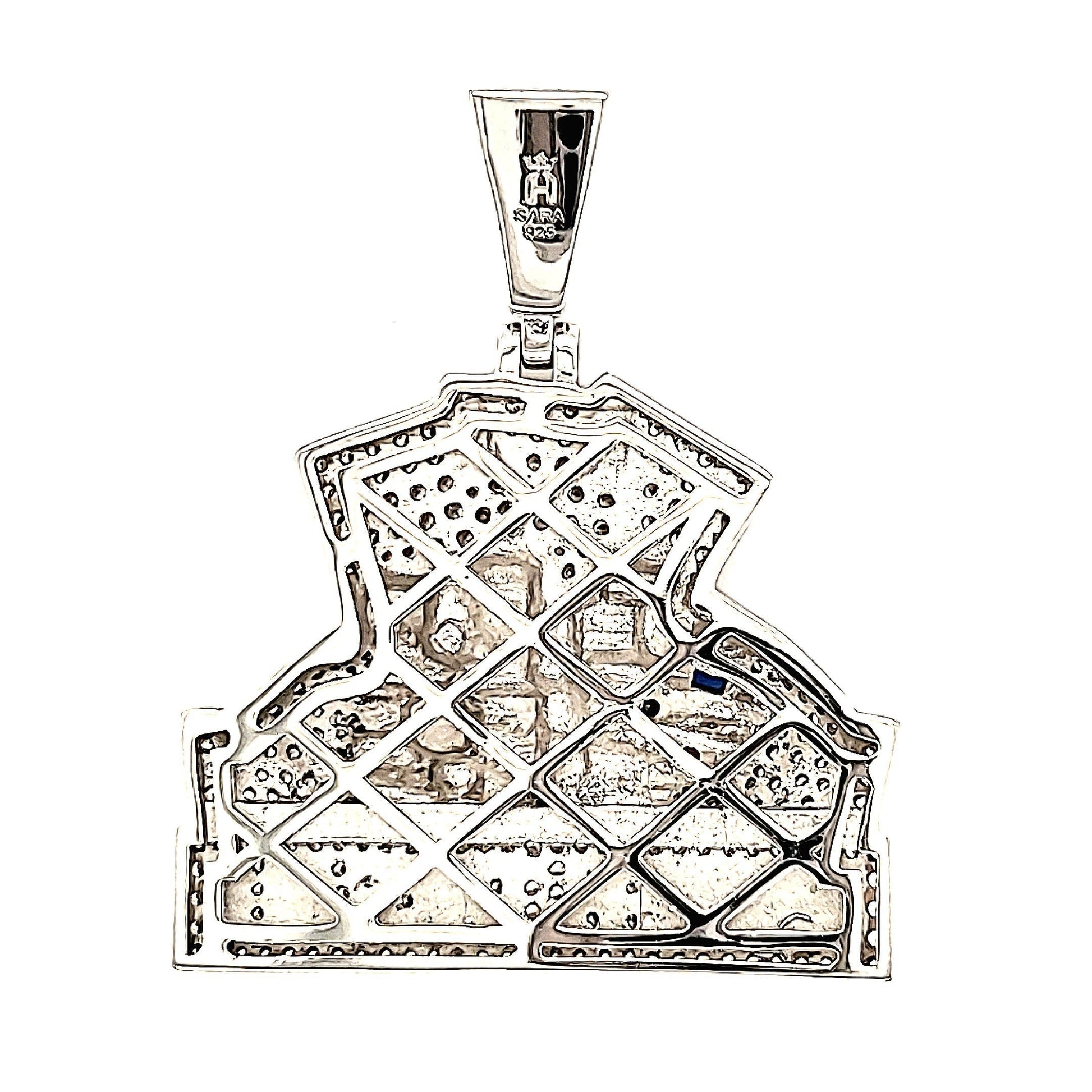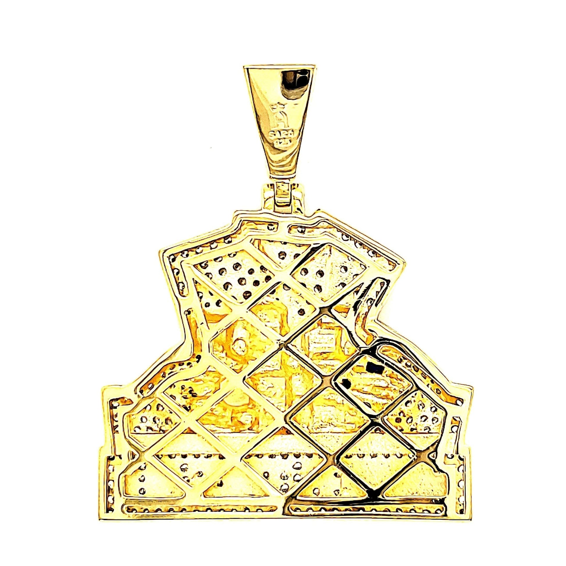 925 Sterling Silver Rhodium / 14K Yellow Gold Jesus Christ Face With CZ Stones Baguette Crown.
