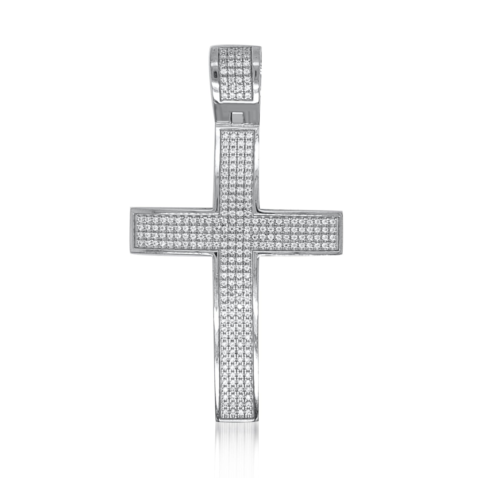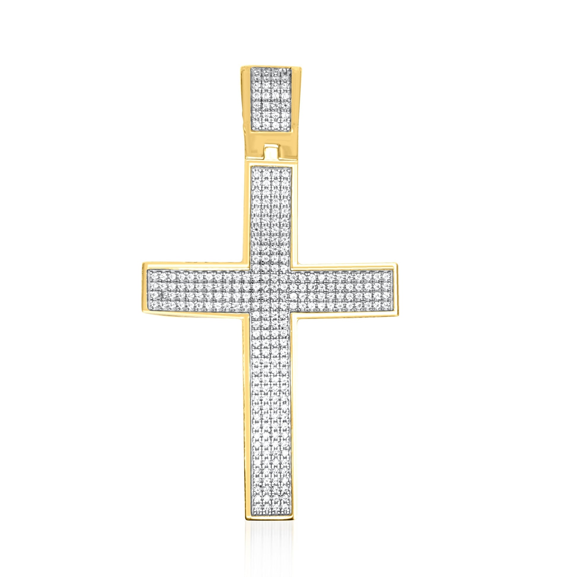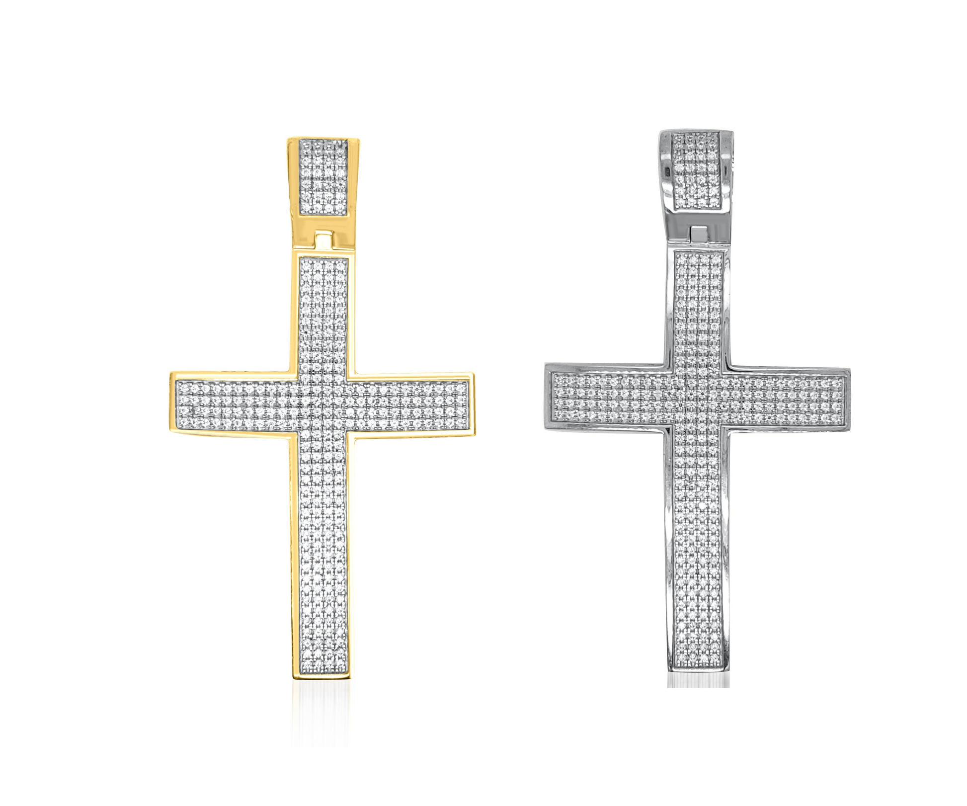 925 Sterling Silver Rhodium / 14K Gold Plated Micro Pave Cross Pendant